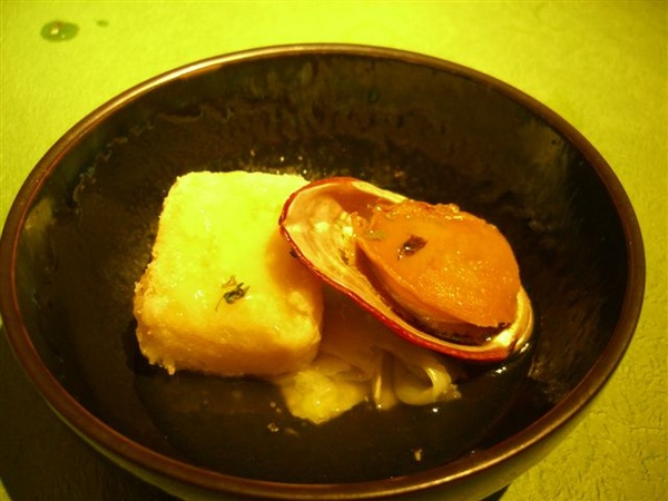 干貝山藥蒸蛋,不同於日本料理細緻型的擺盤,食養的非常的漂亮大器;干貝已經變成絲吃不太出來,上面有勾一層厚芡,應該是有加上山藥泥利用天然的濃稠而非一般的太白粉,滋味不錯,但是視覺美感高於味覺喜好。