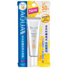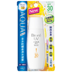 想要高效隔離紫外線,感覺也能像水一樣清爽不黏膩!全新Biore含水防曬保濕系列,創新的新型態水感防曬,以寒天膠體鎖住防曬成分,強化紫外線防禦力,塗抹時釋放大量水分子,讓清爽感大幅提升。更添加玻尿酸保濕成分與綜合柑橘萃取,加強保濕效果,水水嫩嫩,讓妳幾乎忘了擦過防曬!