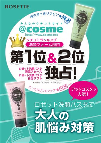 這次介紹的Rosette海泥泡沫洗顏就是2009年@Cosme洗顏品第一名的產品,Rosette家的產品外包裝雖然都很不容易引起注意,不過我對他們家可不陌生,之前就曾經託朋友帶回下圖這款Rosette洗顏膏,雖說至1943年暢銷至今,更是日本第一個乳膏狀的洗顏品,不過包裝也是非常低調...。
