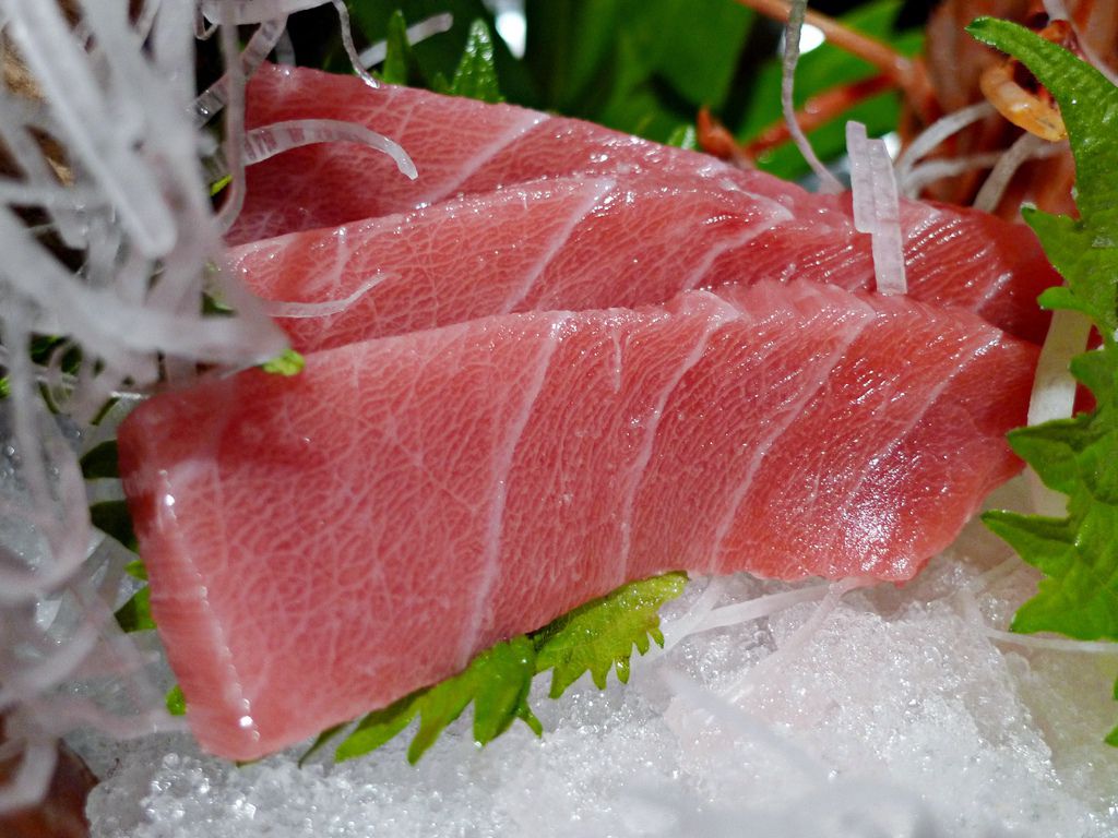 TORO盛合刺身,這是四份餐點放在一起的份量,一樣是依照套餐不同內容略有不同,但每種刺身都非常非常新鮮,部位跟工法也都很好,單吃就鮮甜盡出,舌頭美妙的都要融化了;芥末或是芽蔥也都十分講究,充分的襯托出食材真味