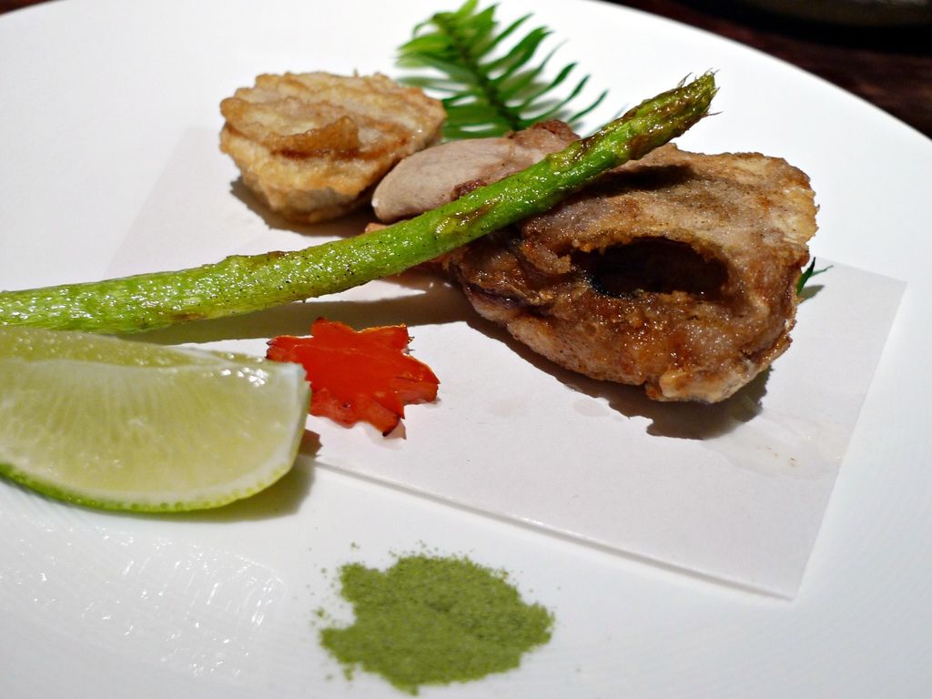 紅喉魚鹽燒,魚肉很有彈性,配上抹茶鹽很能襯出魚肉鮮味,風味特別