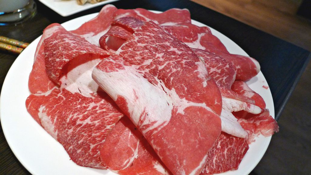 這些肉類都是可以無限點的,其中牛小排我們最喜歡,厚度夠有肉汁肉味也不錯,霜降牛則稍鹹乾澀了點,特級肥牛雖然最易入口但肥肉也最多,豬五花則是還好,還是牛肉比較適合拿來煮麻辣鍋。