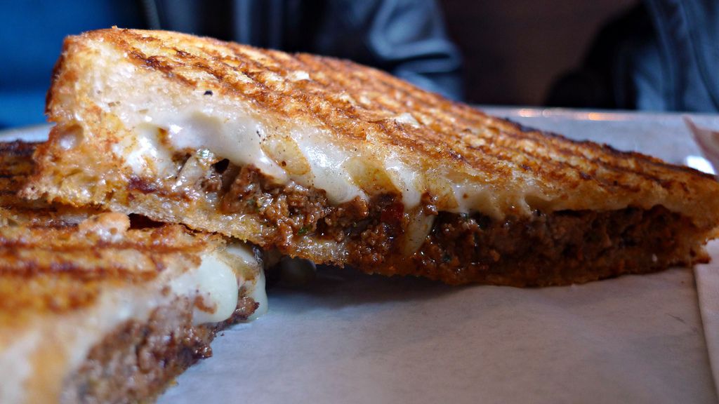 海狸先生的meatloaf:$8.25,其實每次來我們兩個都是點漢堡,但是這次想說每次都看很多美國人點三明治,就想我們也應該要試看看,只是我們兩個始終無法領略美式冷三明治的樂趣,所以就點了熱三明治,吐司煎的酥脆加上香濃的起司,內夾的香料碎肉餡十分有異國風情,整體搭起來蠻好吃的,不過可能因為全部吃完容易覺得有點膩,還是覺得單純的漢堡比較讓人意猶未竟。