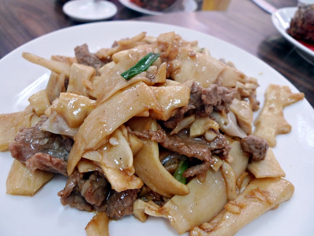 炒牛肉,這道固定的是炒牛肉搭配某樣蔬菜,有時候是筍,有時候是杏鮑菇或是酸白菜,味道一般