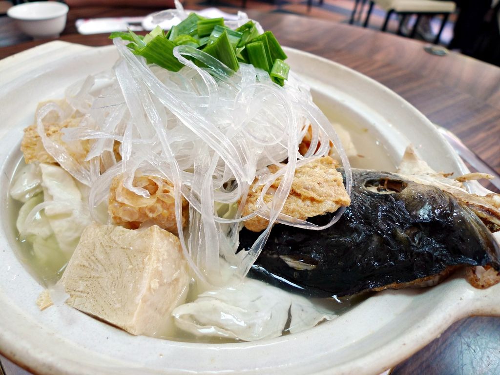 乳白色的高湯配上寬粉絲、凍豆腐、炸豆皮與大白菜,加上先炸過得魚頭越煮湯越鮮甜,這一鍋吃起來鮮美清爽讓人意猶味盡,湯喝不夠也可以請店員再加湯