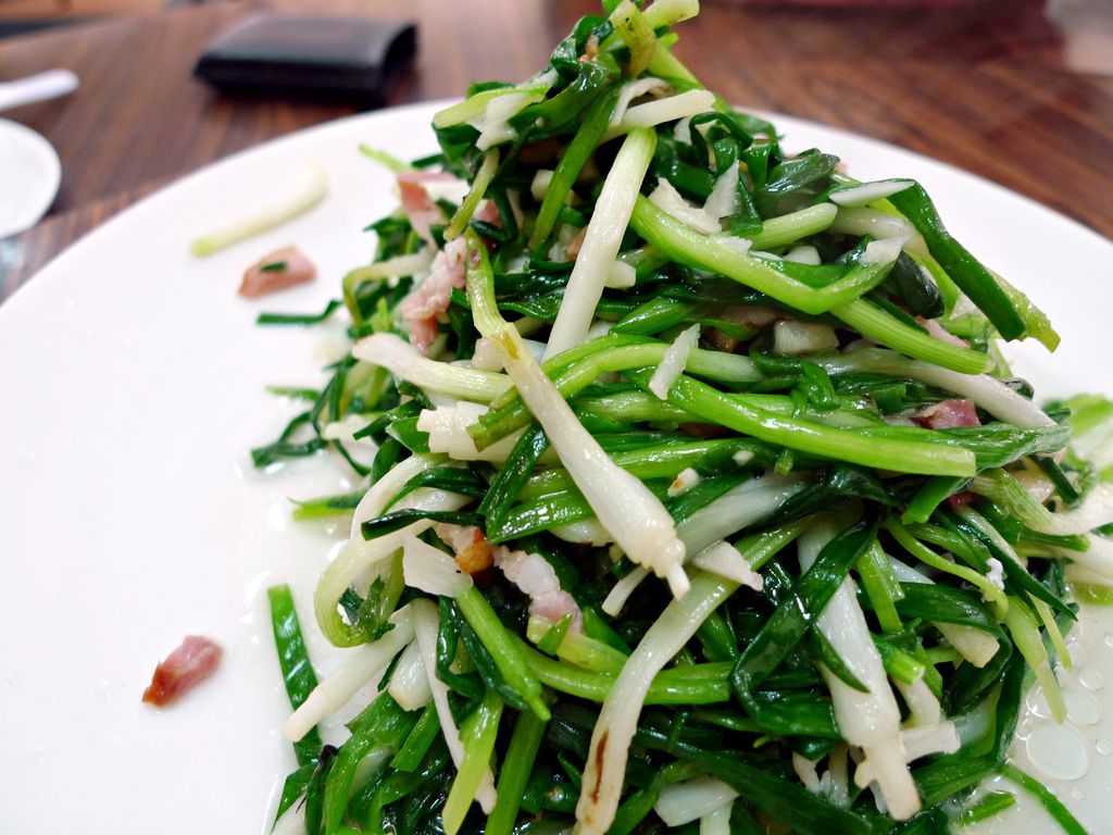 老徐的店有幾樣招牌菜,其中之一就是這道炸豬腳,先滷後炸的作法,口感很特別,因為有先在老滷汁滷到入味,所以一咬下去可以嚐的到酥脆的外皮跟香Q入味的蹄筋,沾點一旁附的椒鹽也可以提提味,第一次吃覺得相當驚喜,口感味道都很特別,也蠻好吃的,只不過一人一塊實在太多,吃到最後會有點膩,兩人合吃一塊差不多