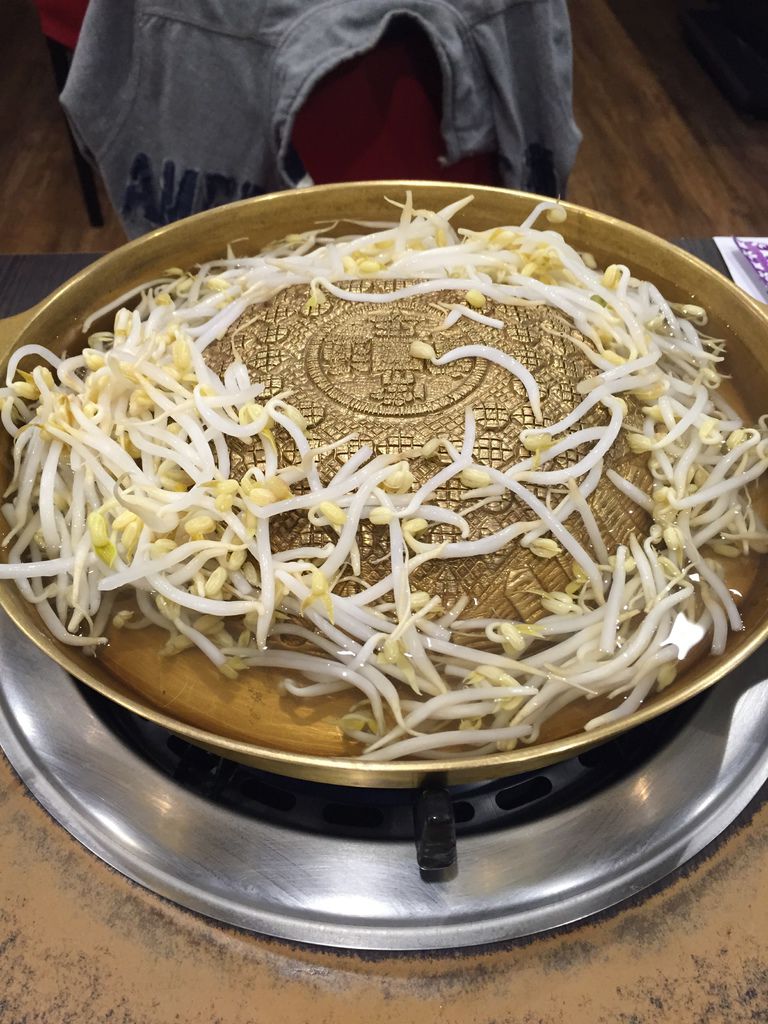 這是店家推薦的吃法,用烤好的肉片包住生菜絲一口吃下,這看起來普通的牛肉片吃起來卻有著很平衡的味道,吃得到肉味肉香加上爽口的生菜,真的會讓人一口接一口,看似不搭銅盤烤肉的豆芽菜吃起來倒也適合,原本對簡單的火鍋跟豆腐沒有太大的期待,沒想到品質都很好,吃得出來都是有挑選過