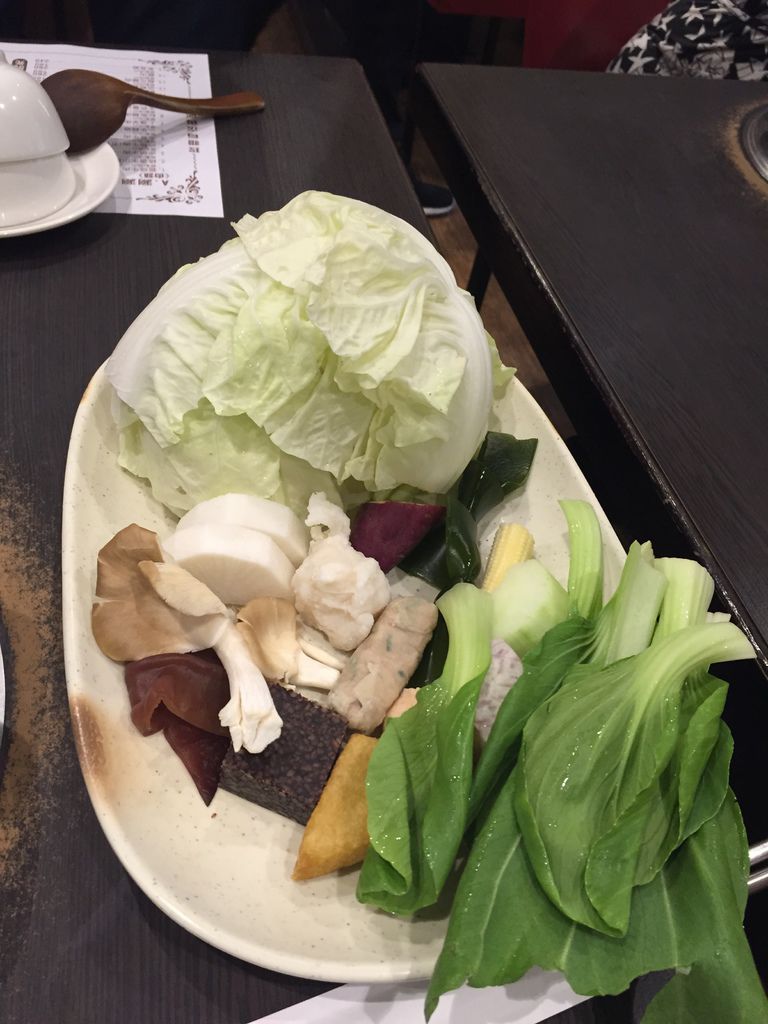 這雞腿跟一般涮涮鍋店的雞肉紙片不同,用的是整隻雞腿,雞肉吃起來沒有腥臭味,肉質Q彈不硬,蛤蠣也都是新鮮好吃,看似普通的菜盤吃起來就知道不一樣,青菜都是有特別挑過,不管是大白菜、白蘿蔔或是芋頭都是不輸高價火鍋的品質,可以直接吃的到青菜的清甜,連火鍋料也比一般店家的好吃許多